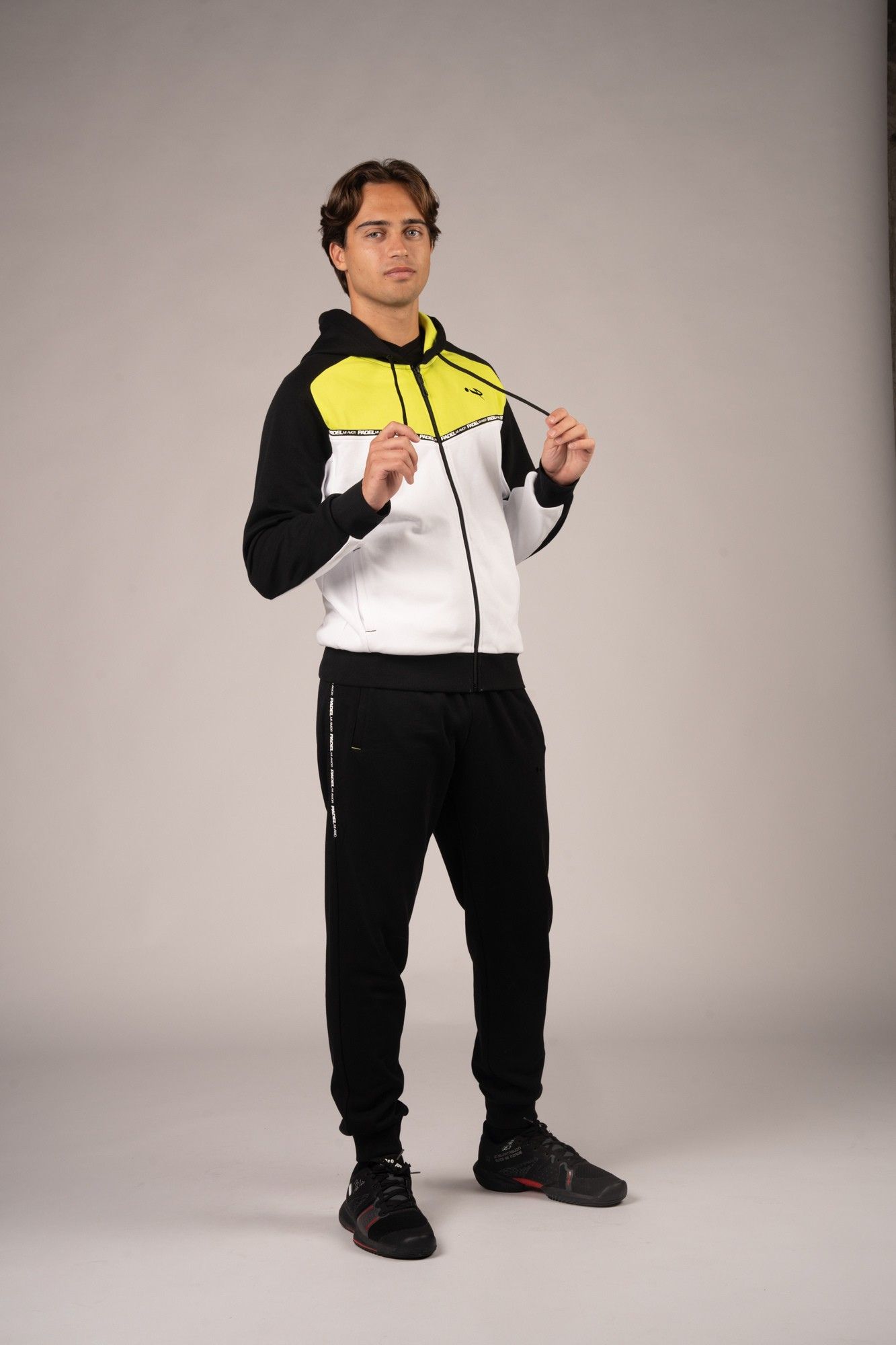 Il pantalone VALENCIA di Padelmiamor è pensato per offrire comfort e stile sportivo dentro e fuori dal campo da padel. Realizzato in morbida felpa French Terry, assicura una sensazione avvolgente e una vestibilità ideale per il tempo libero o il riscaldamento. Il modello affusolato valorizza la silhouette senza rinunciare alla libertà di movimento, mentre la comoda fascia elastica in vita con coulisse e il fondo pantalone elasticizzato garantiscono una tenuta sicura e personalizzata. I dettagli con applicazione e stampa logo sui fianchi donano un tocco distintivo, completato da pratiche tasche laterali e una retro tasca per il massimo della funzionalità. Con VALENCIA porti sempre con te l’identità unica di Padelmiamor.